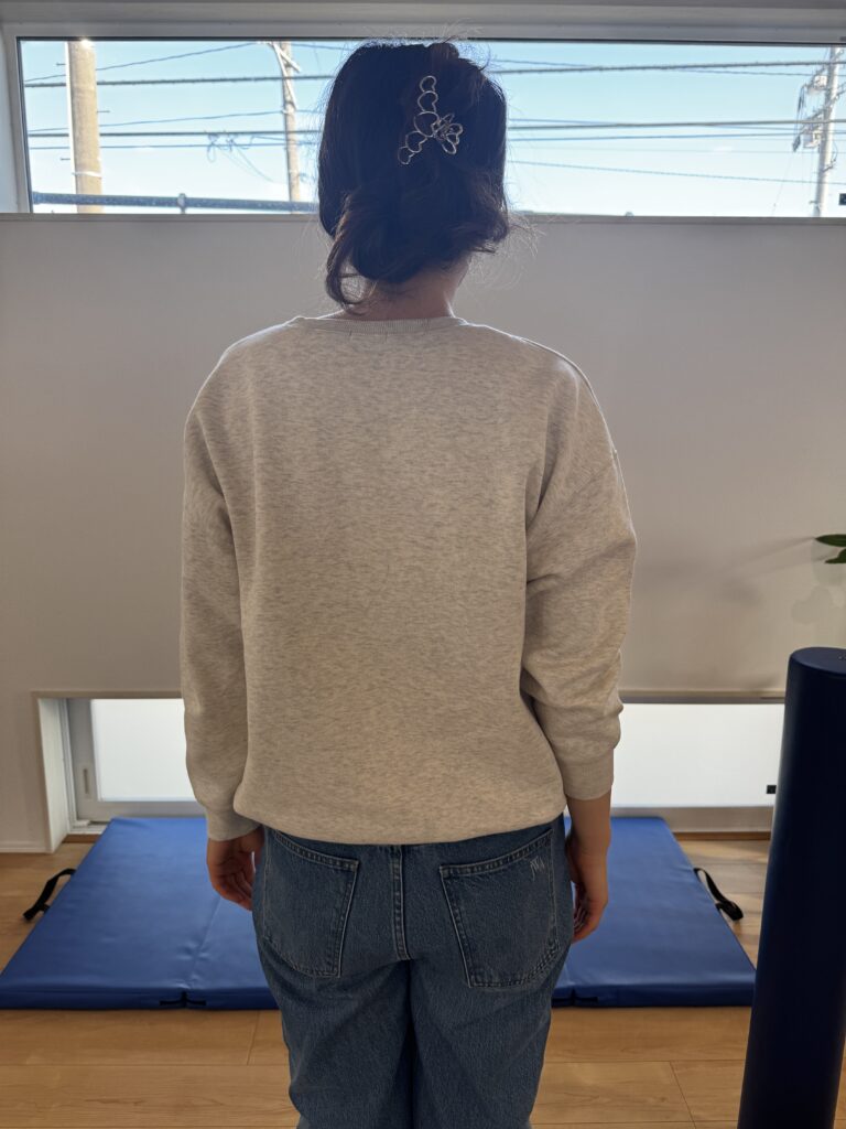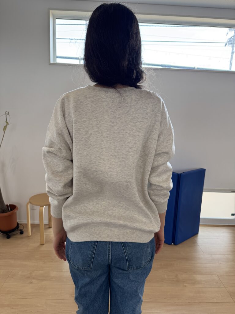 • 骨盤と肩の傾き: 左右の肩の高さに差が出てしまい、服の襟ぐりがズレやすい状態でした。